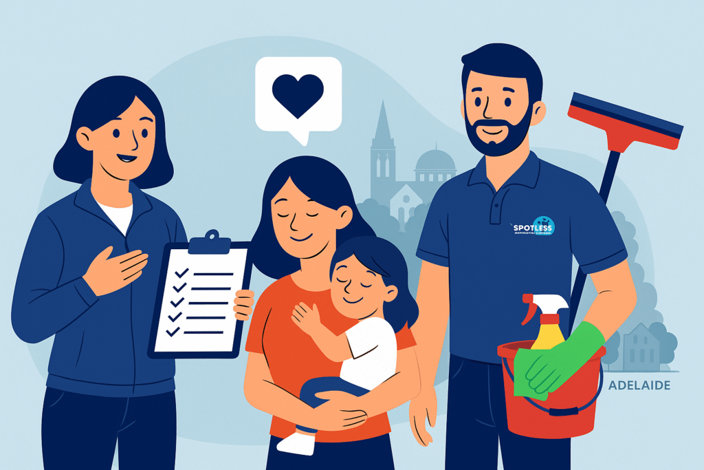 In 2024, we officially launched Spotless Professional Cleaning Services. Today, we’re proud to bring our personal, reliable approach to homes and businesses across Adelaide. Backed by years of experience, high standards, and a passion for making people’s lives easier — we’re here to make a difference, one spotless space at a time.